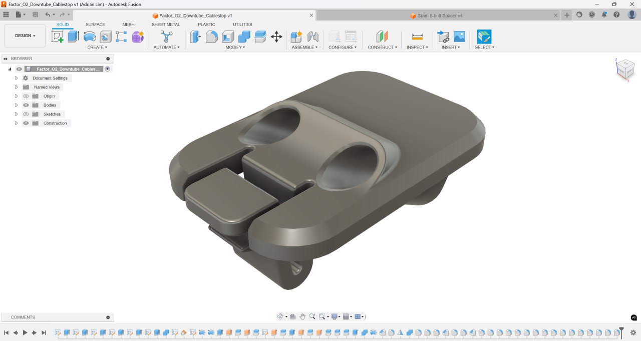 You’re right. I’m using my own printer (FDM) for prototyping to check part fitment, but the final part will be done using SLS PA12 Nylon (outsourced). I suppose the BB cable guide could be just PLA, since the stresses are more compression and not shear compared to the cable outer stops at the top of the downtube and end of the chainstay.