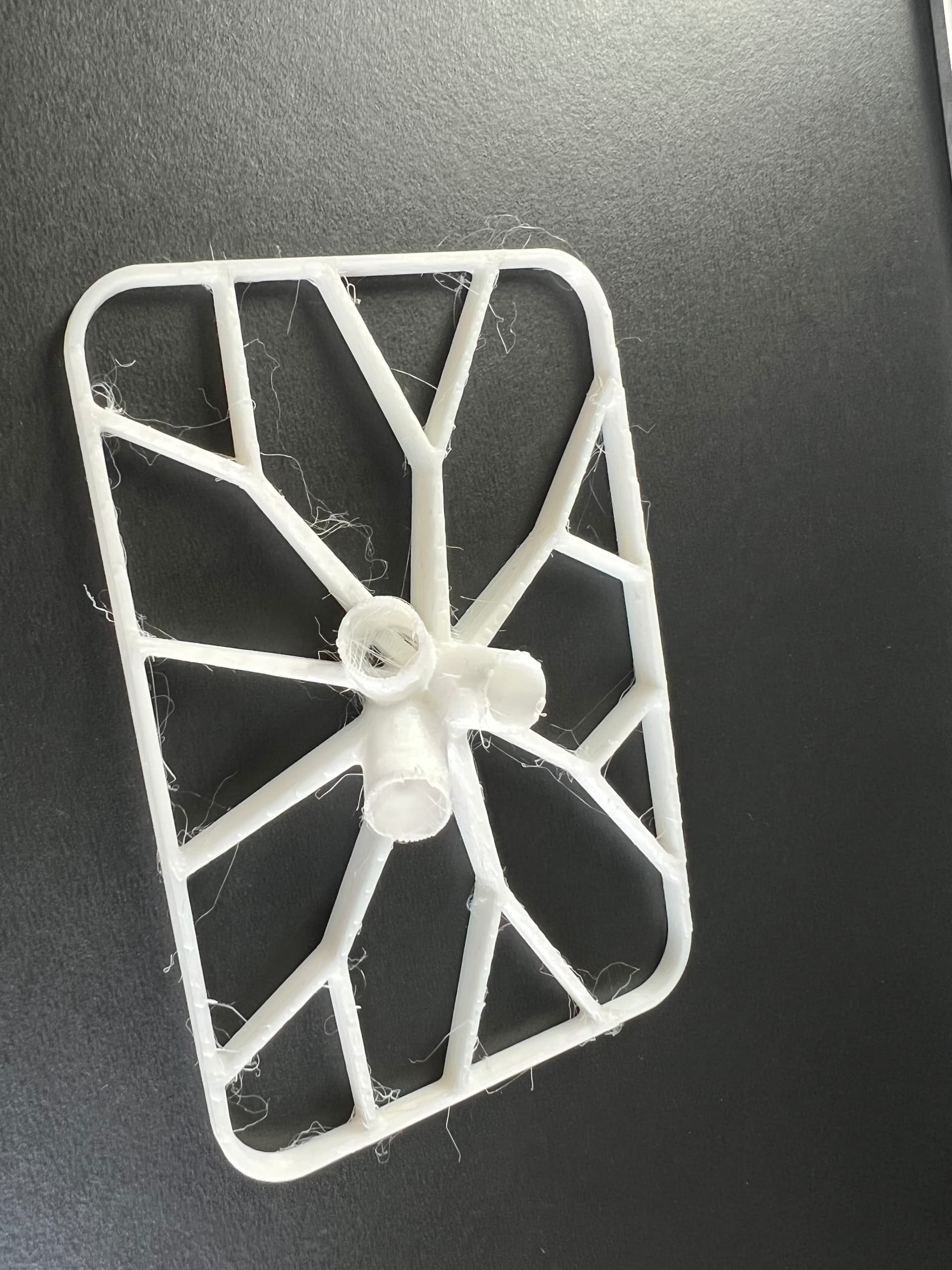 The finished object fills a 30x30cm print plate. This required a few tries to get right because printing long thin beams meant the plastic shrunk away from the build plate after a few layers. Solution was brake cleaned build plate plus a raft to stick everything down.