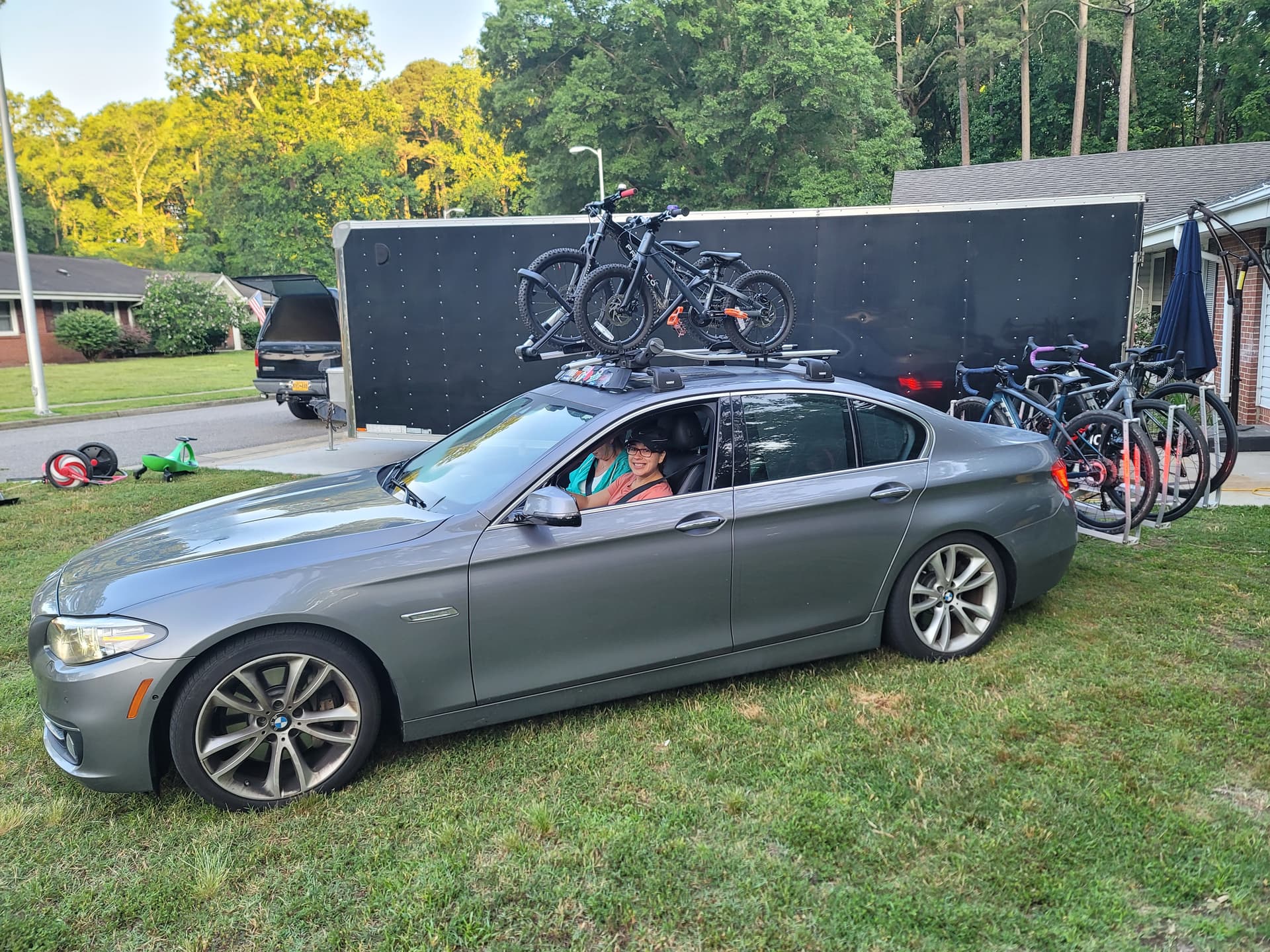 I much prefer the hitch rack. I don’t like putting more than the kids bikes up on the roof. I feel like the full size bikes put way more leverage on the roof racks up there and they move around a lot more than I would like.
