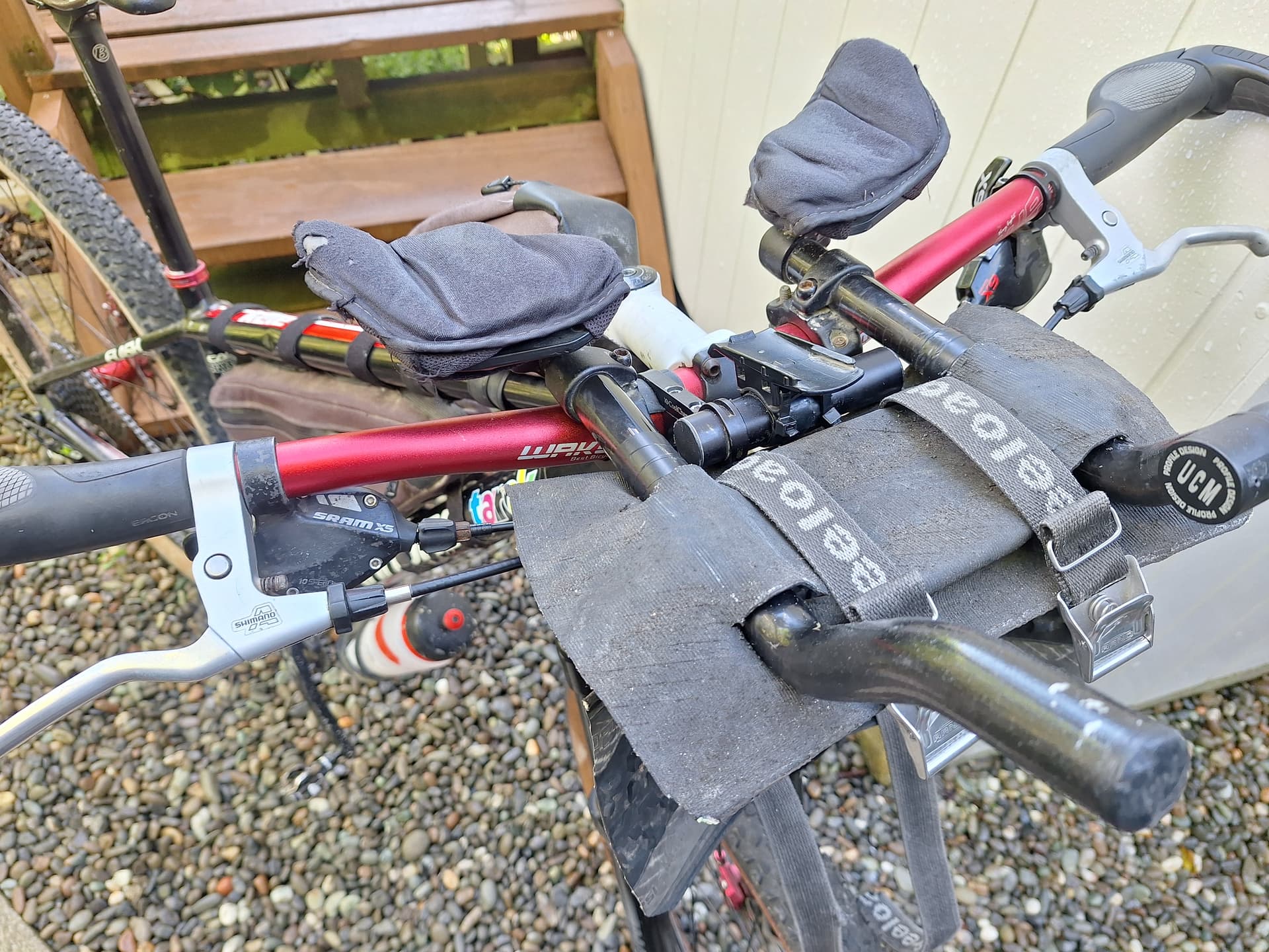 Because of having a carbon bar, I have protected the bar with electric tape and tried to use as little torque as possible to tighten the bolts of the clamps. For the next trip I probably make sure not to overlap the tape and add some friction paste between it and the clamps. I’ll also make sure to reapply threadlocker to the bolts ![]()