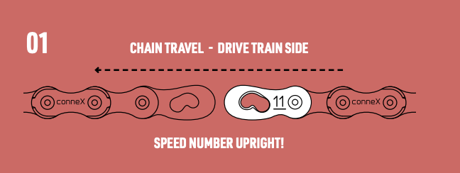 For the Connex link, which works great for 12s Shimano, I’m always forgetting the link direction. Install with the speed number upright as you install at the bottom of the chain. Also the pointy part always points inward