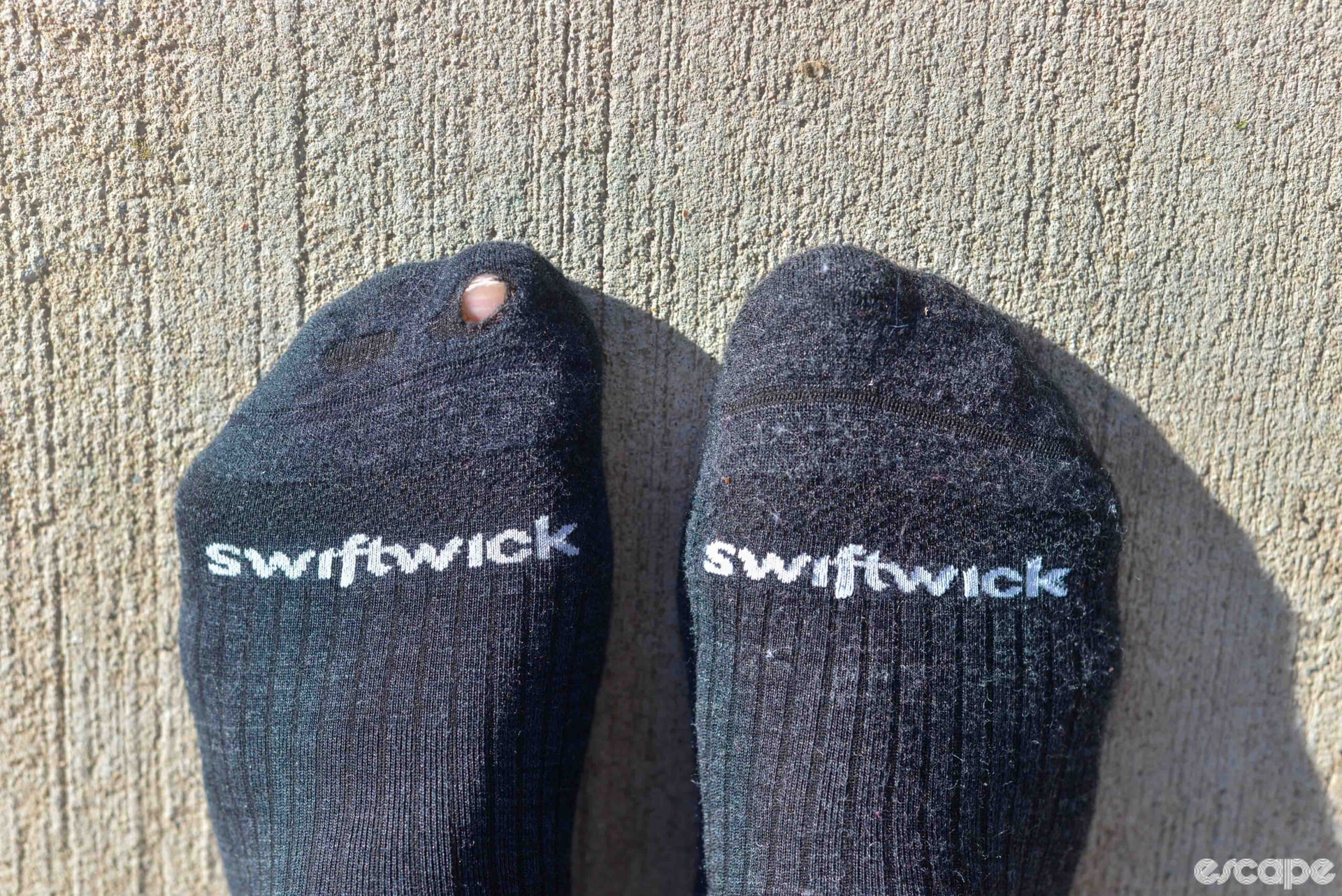 Ps. I hope at least some of you like something else than Swiftwick socks, as those seem to be a firm staff fave. (Pictured Caley’s worn out pair)