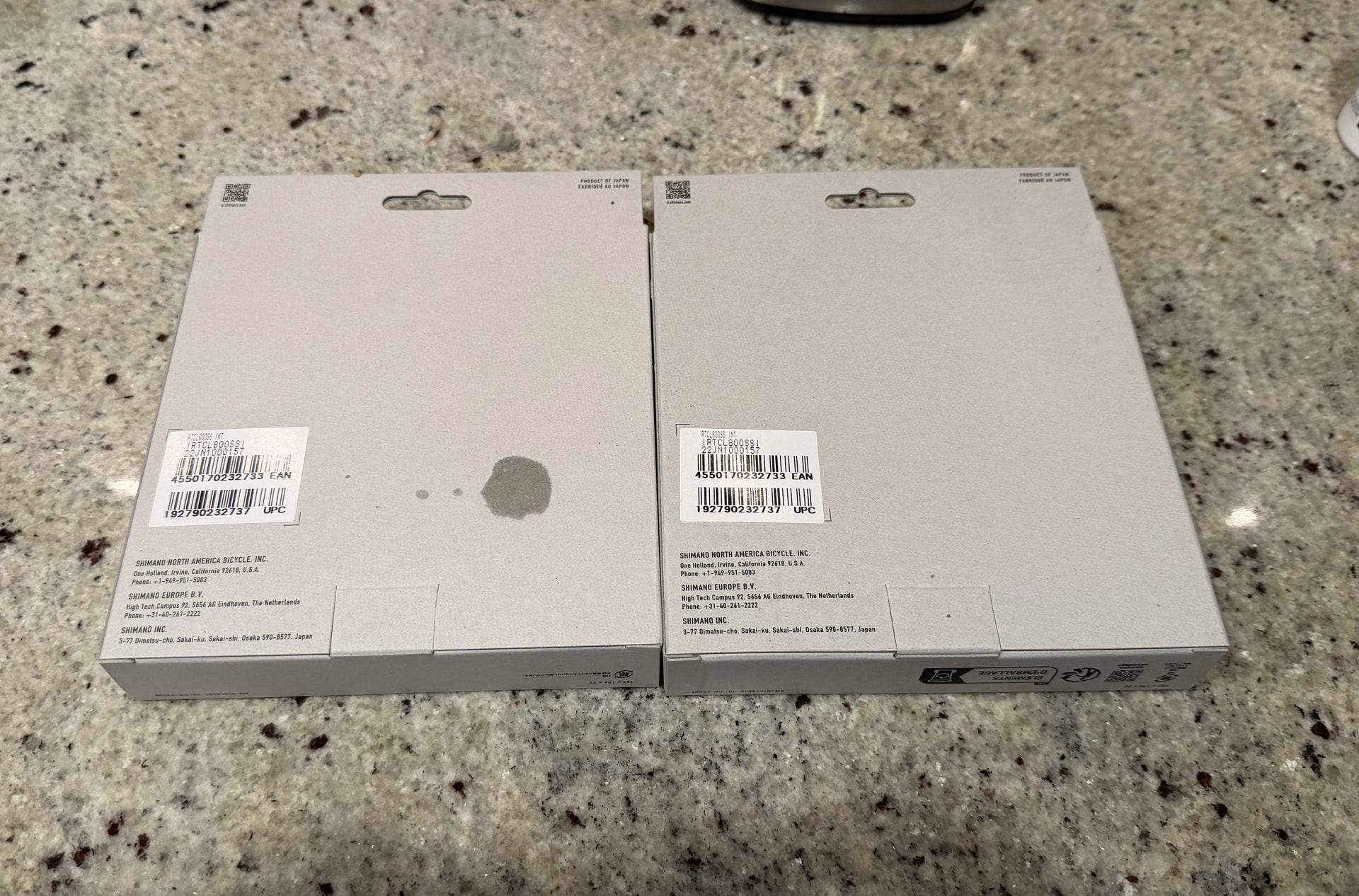 Other sides of the packaging. Minor differences on the bottom of each box. And, a change in part number?