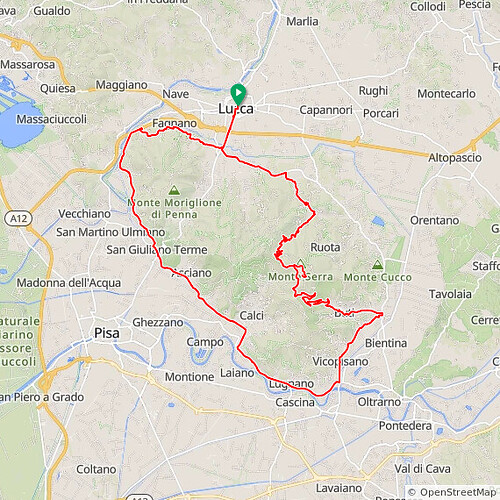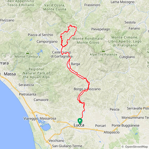 Didn’t get round to it, but the route past the TV antennas to Pisa looked nice (but it’s just the one climb - I would stick north of Lucca), as well as the ride to San Pellegrino in Alpe (with 200km, you can build some nice rides North out of Lucca into the Apuan Alps!).