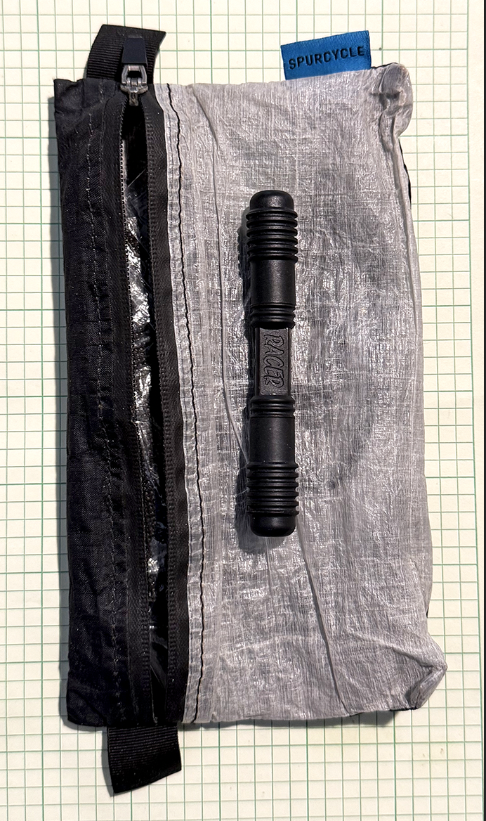 I actually chuck it in a bag in my rear pocket. Spur Cycle used to make a waterproof pouch out of sail cloth in which you could put things like a phone, money, ID, or whatever you wanted. I keep my Dynaplug Racer in that along with my phone, cash, etc. I thought about putting it in my saddle bag, but the saddle bag (Orucase Saddle Bag HC, the smaller version) is a bit smaller than Silca Mattone and is pretty full. Moreover, if I get a puncture not fixed by sealant, itâs easy to get the Dynaplug out. I thought about using the Dynaplug mount, but I wanted to be double plus sure that I wouldnât forget it or lose it. Plus, given how little I keep in that bag, itâs easy to quickly grab the Dynaplug.