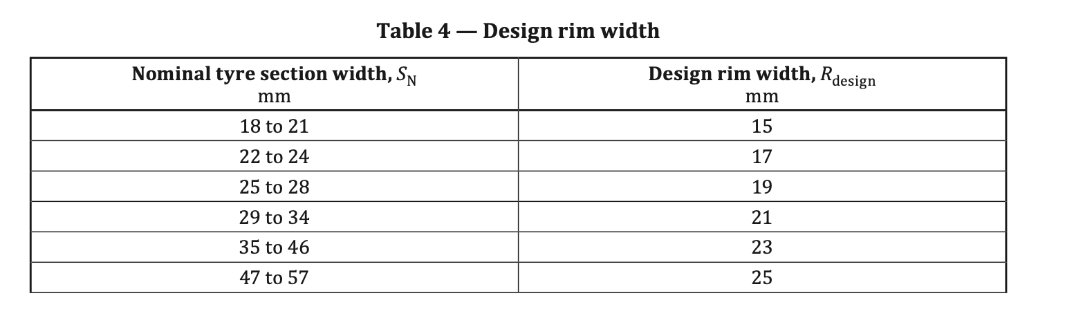 I wish they’d all keep to a standard! I’ve found some info on the Continental website. It seems to suggest that they use different width “measuring rims” and for different tyre sizes, but it’s unclear.