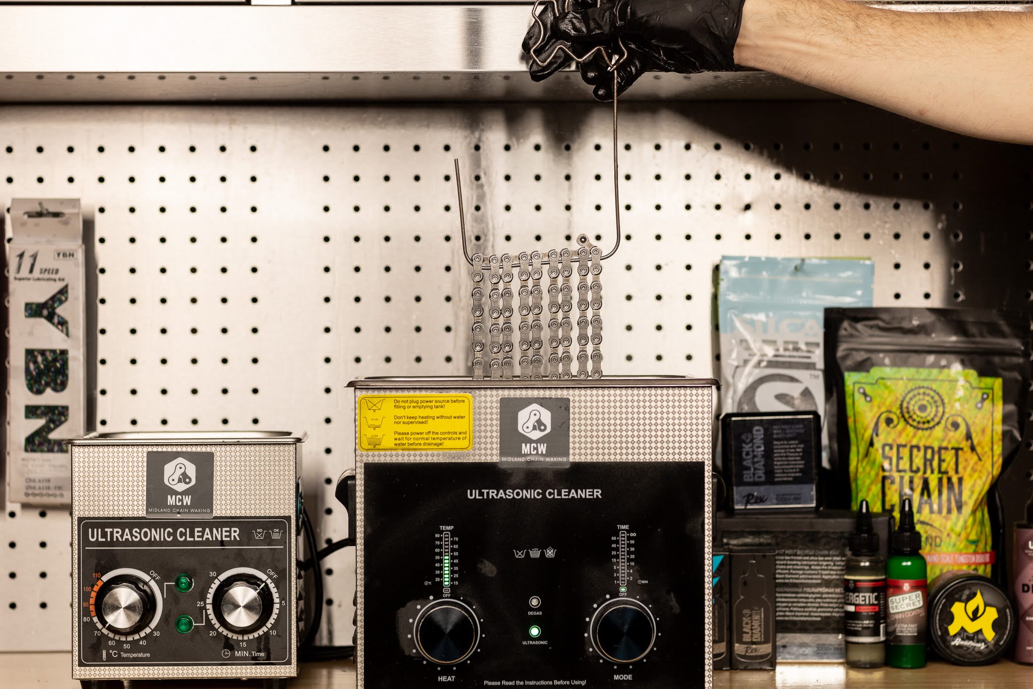 Molten Speed Wax maintains an excellent guide on cleaning chains with ultrasonic cleaners, and is recommended for step-by-step directions.