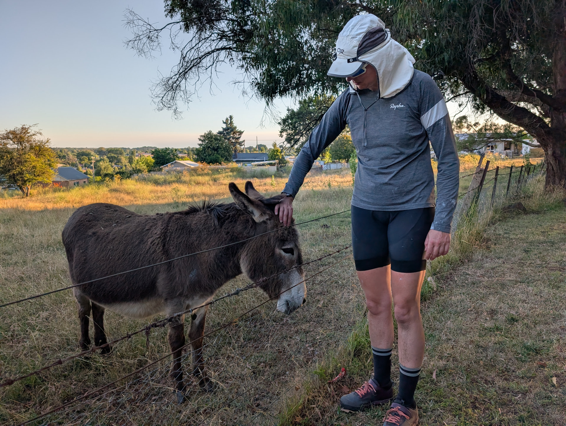2026-01-08 1930hrs - Day 02 Laggan Road on the edge of Crookwell we spotted a donkey and managed to coax him to come over and be pet. He needed a wash.