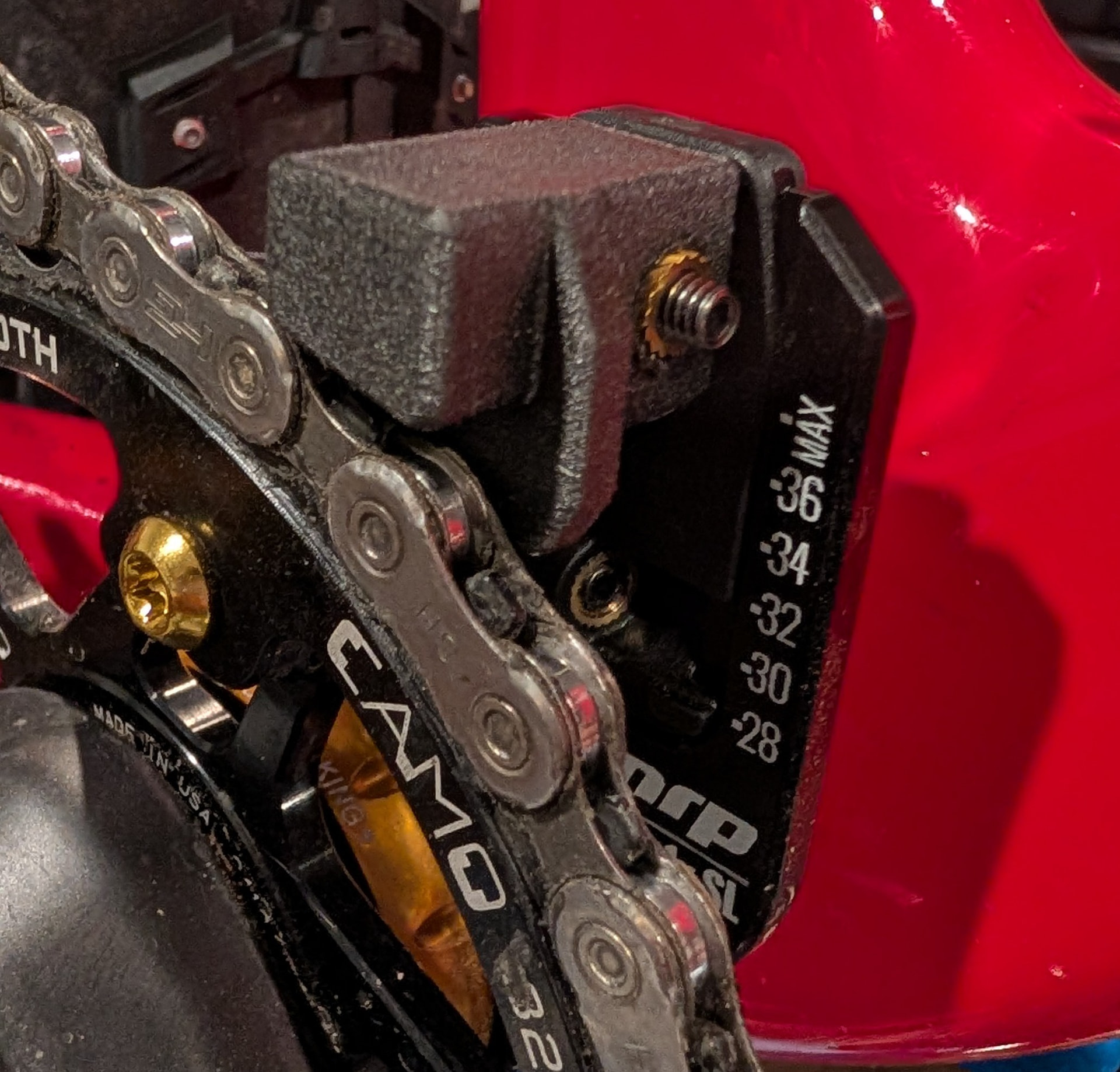 Due to my fat bike’s wider Q-factor, I couldn’t find a 1X chainguide that would work with my Salsa Beargrease. I purchased an MRP 1X SL BB mount chainguide (https://mrpbike.com/collections/xc-trail-chainguides/products/1x?variant=46246239535335), and made a new top piece that fit my bike. You will need to use a threaded M4 x 4mm insert for the set screw. The model can be downloaded on Printables: MRP 1x Fat Bike Chainguide by BobO | Download free STL model | Printables.com