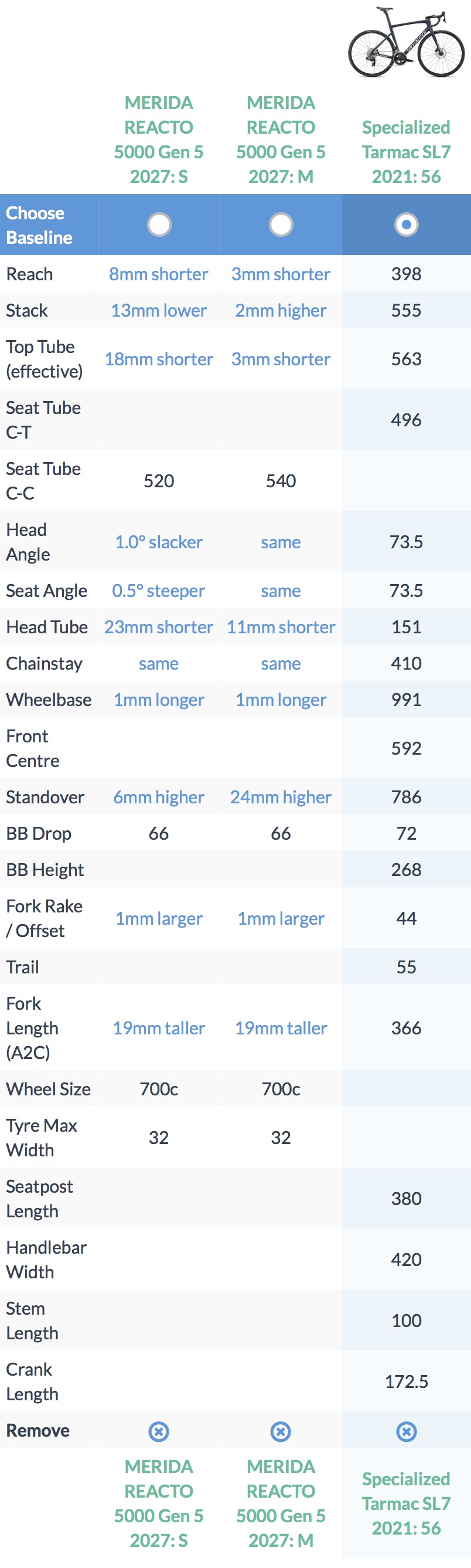 But then the effective top tube on the small compared to a 56 SL7 is really short. How would I make a small Reacto fit me?