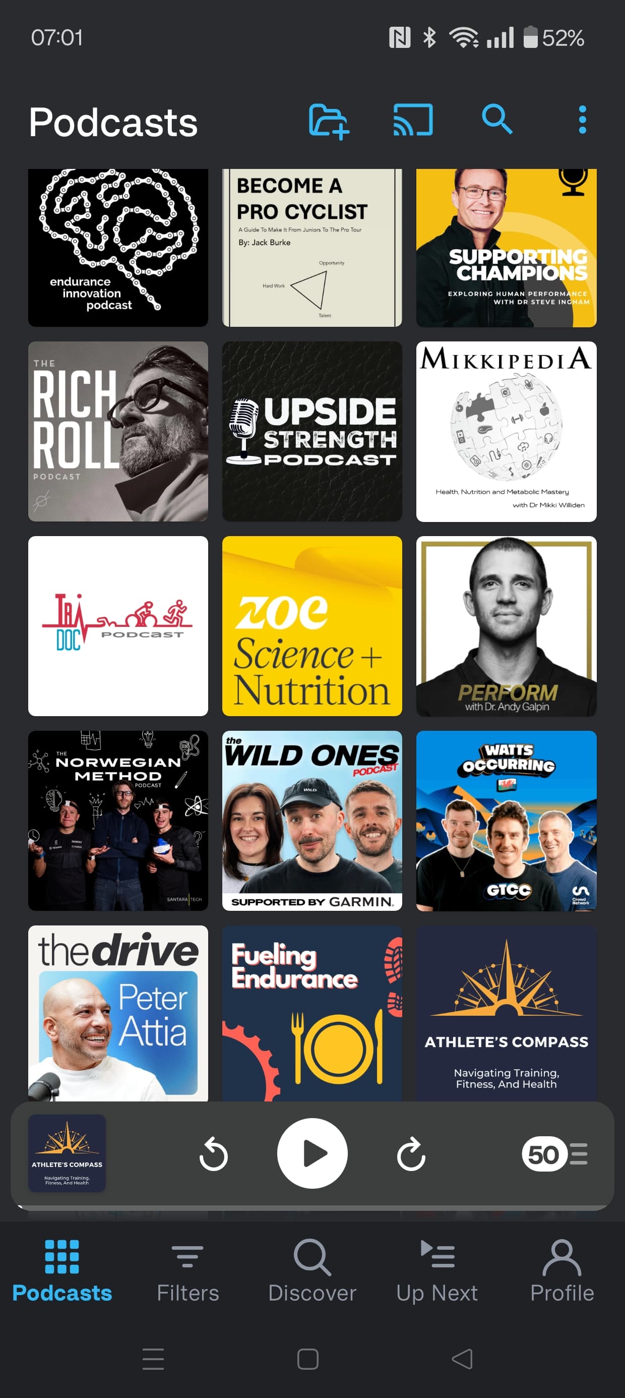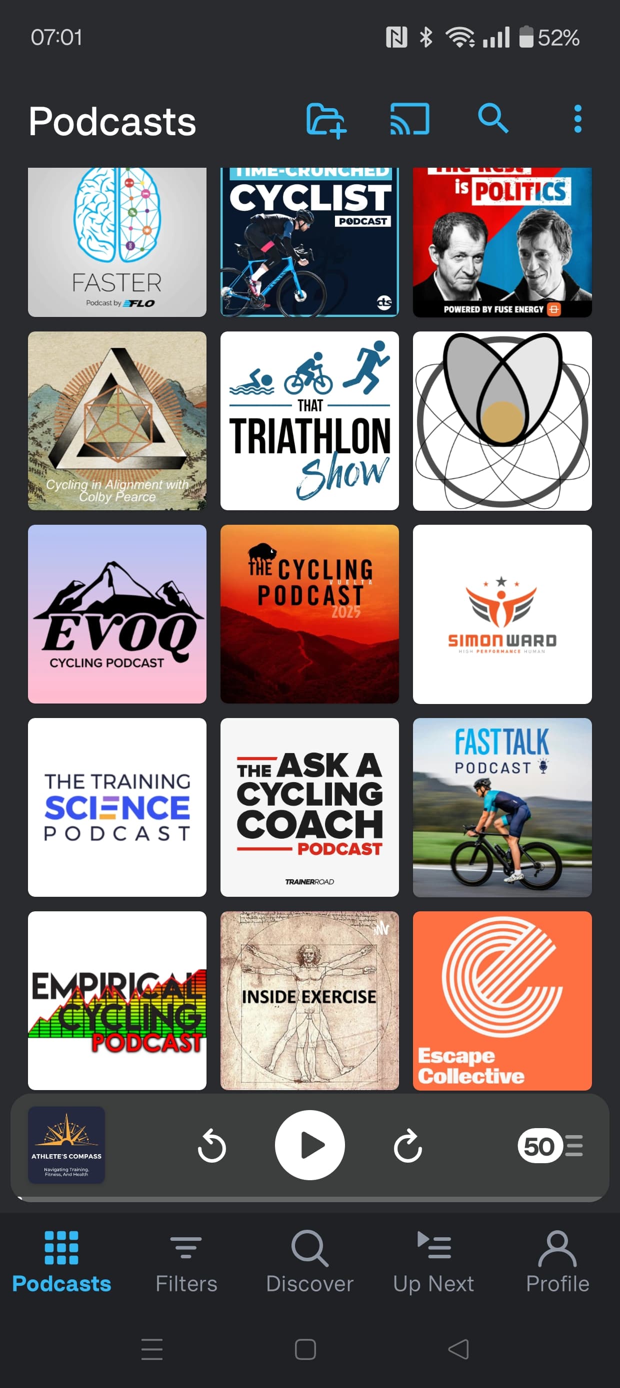 Screenshots of my cycling & health related podcasts that I listen to. Some of them intermittently others regularly