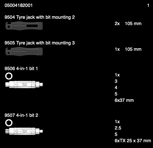 The daysaver essential/coworker combo is pretty comprehensive. I’ve used it a couple of times to adjust things out in the real world and I quite like form of a hex key over a normal folding multi tool as well.