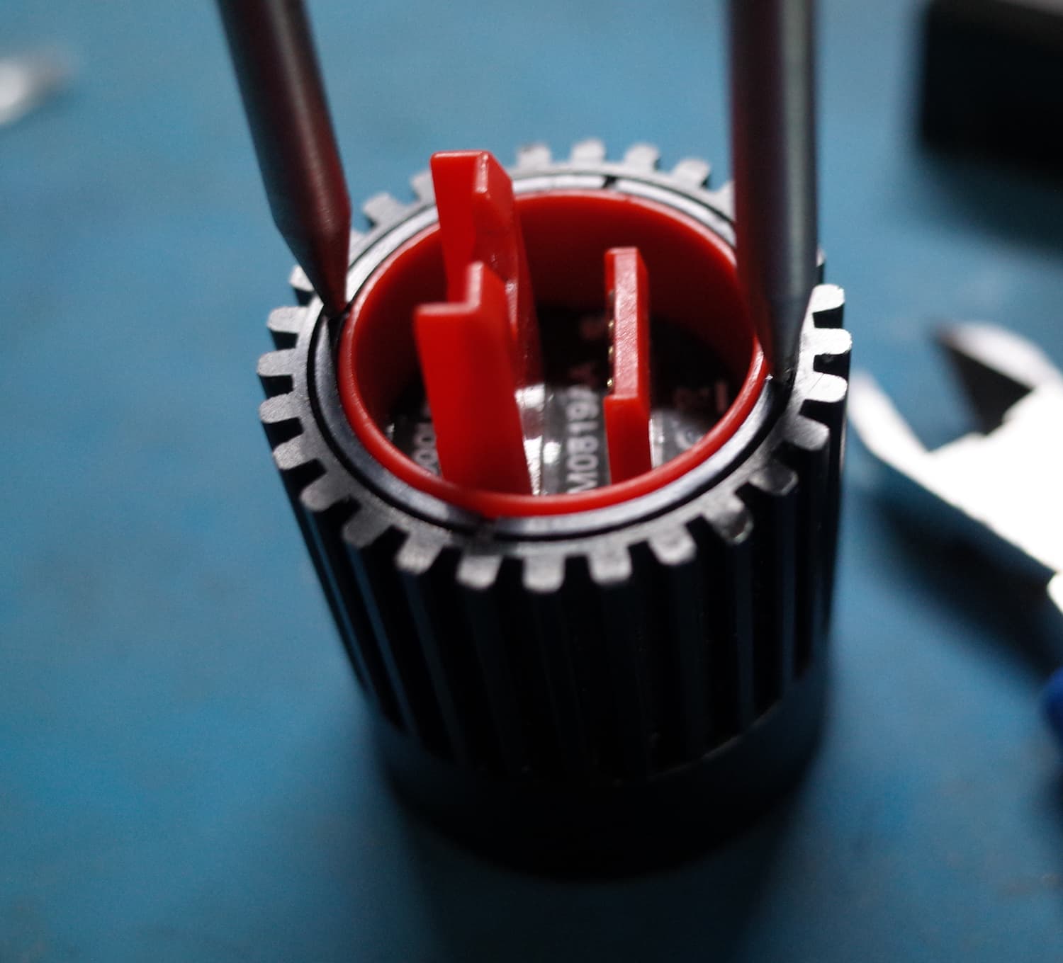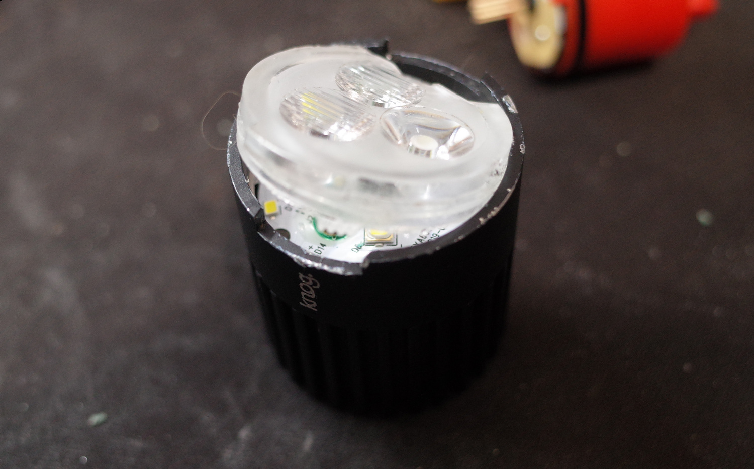 I bought a Garmin mount with a Knog PWR Trail attached, it worked but the twist switch didn’t respond. I attempted to repair it and… it was a success but not much fun. In case anybody wants to try, here’s what the insides look like.