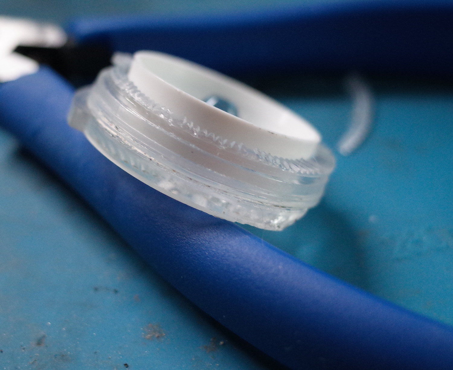 The jagged part is below the retaining ring and is the part that needs to be broken off the get the lens out. One of the removal tabs on my lens got snapped off completely during this process; I reattached it using UV resin.