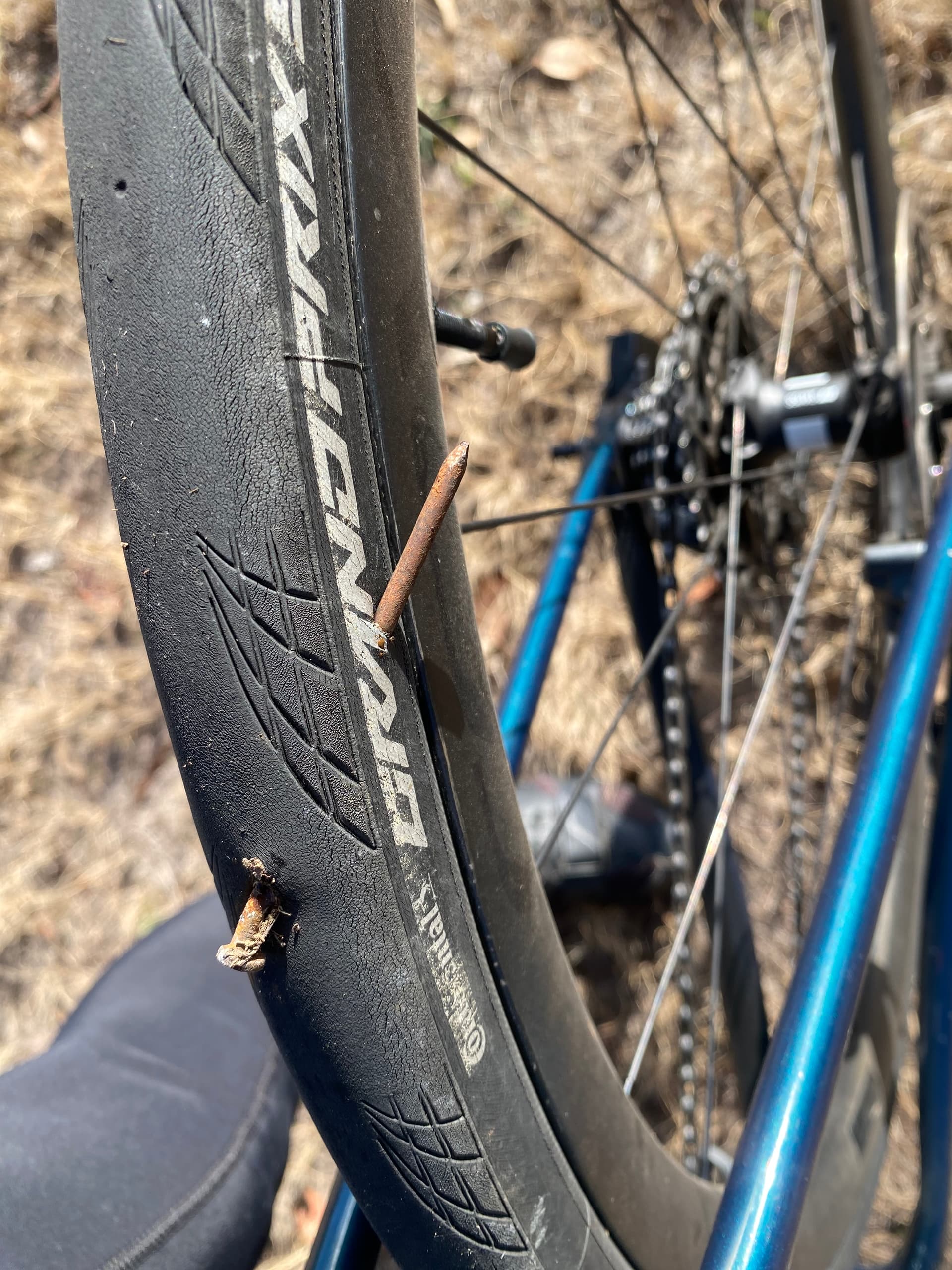 Holy moly! That’s one heck of a puncture. Glad the bike was unscathed and you made it home okay