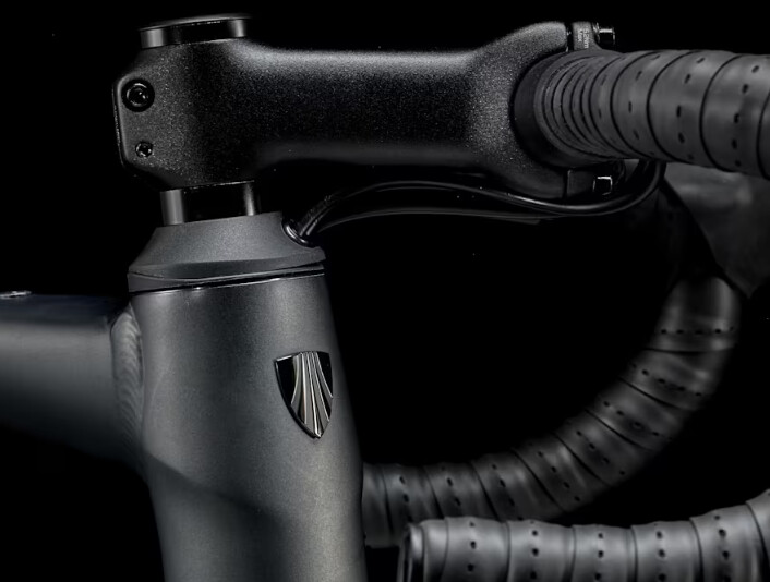 The Trek Domane, depending on spec level, may come with traditional round spacers and regular stem, or with an RCS Pro stem (proprietary stem+spacers, but hoses run underneath the stem not internally). Either way, you can still get a normal 40-ish mm of actual spacers. The RCS Pro stem is available in either -7° or +7° stems as well.