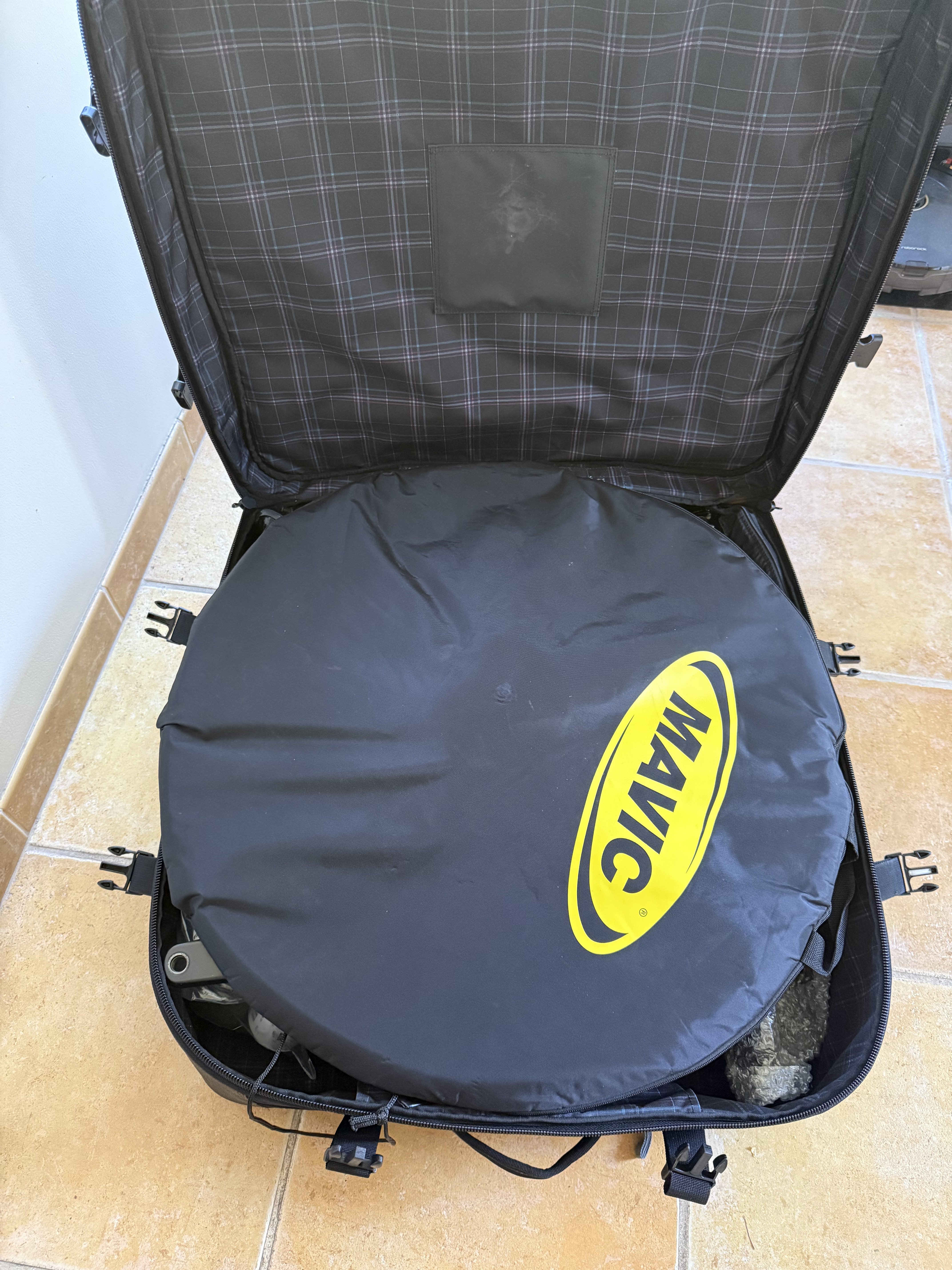 Wow, maybe the breakaway case is just enough thinner that I always struggle with the puzzle. It’s not that things can’t fit, it’s just that removing bolts are a lot less frustrating? Or perhaps the difference between road & cantilever brakes? It’s not like the breakaway case offers that much more padding either, certainly not that much more than two wheel bags. Still plenty of room for extra clothes, tools, bottles in all the nooks and crannies.