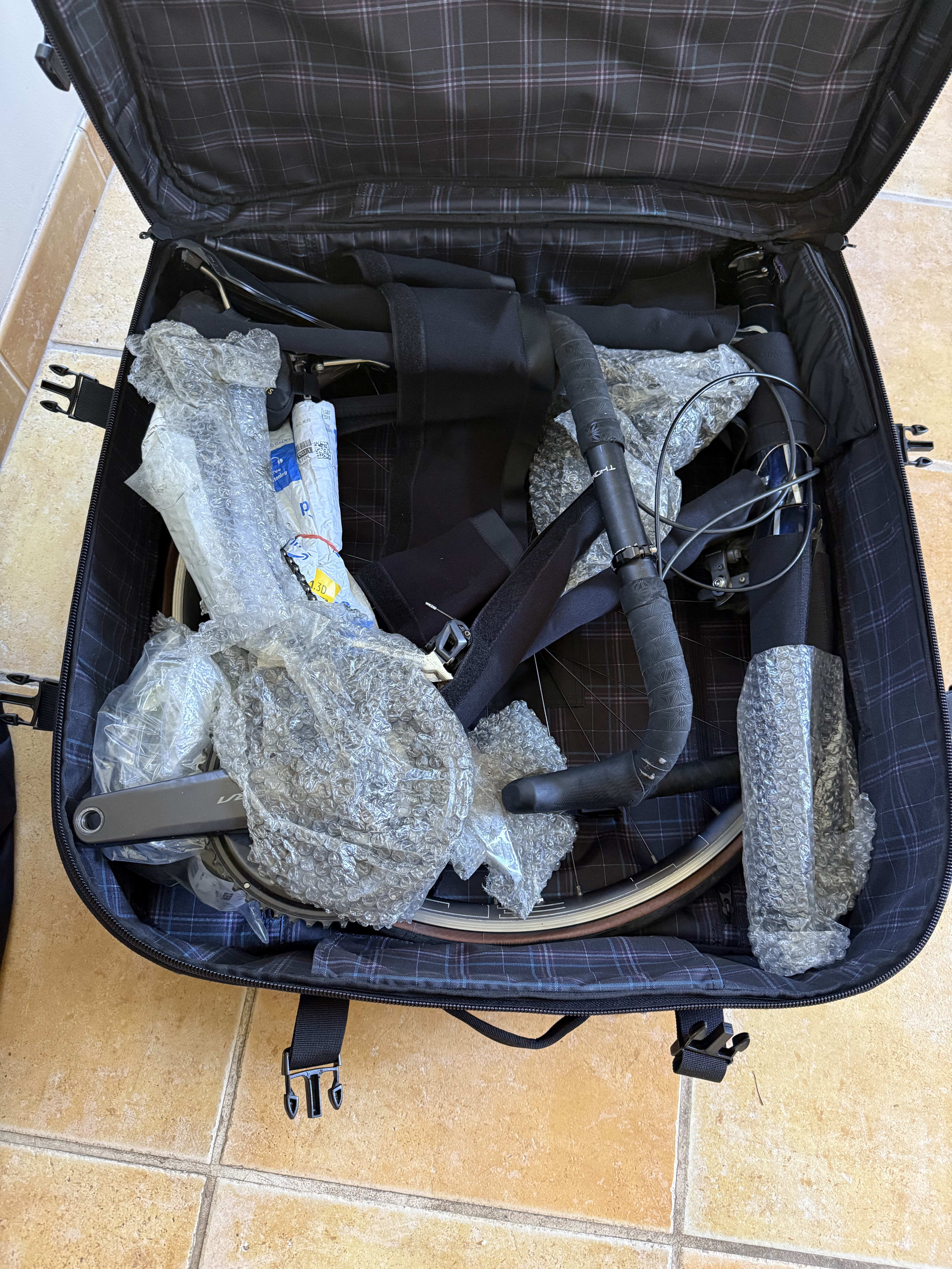 So I’m that guy that removes the crankset, pulls the fork, removes the chain using a master link, etc etc. These days I even pack my handlebars in my small duffel carry-on bag because it doesn’t actually take up that much space but is far easier than the breakaway case!