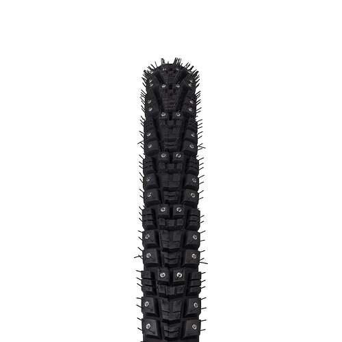 On my side, I am either using Continental Spike Winter 240 studs 42mm, Schwalbe Ice Spiker Pro 2.25" or 45NRTH Wrathchild in 2.6â. The faster are the Schwalbe, by far, and the less noisy the Contis. The Schwalbe are very scary when cornering, itâs why I switched to the 45NRTH, which also allowed me to use only one wheelset for all winter, instead of two. I got more robustness issues with the Contis, notably in the hook region. But I did once a descent in 10cm of fresh snow and they were ok. On the flat with the same snow, there was no traction. The 45NRTH gives a sacrĂ© look at my MTB, I love it!
