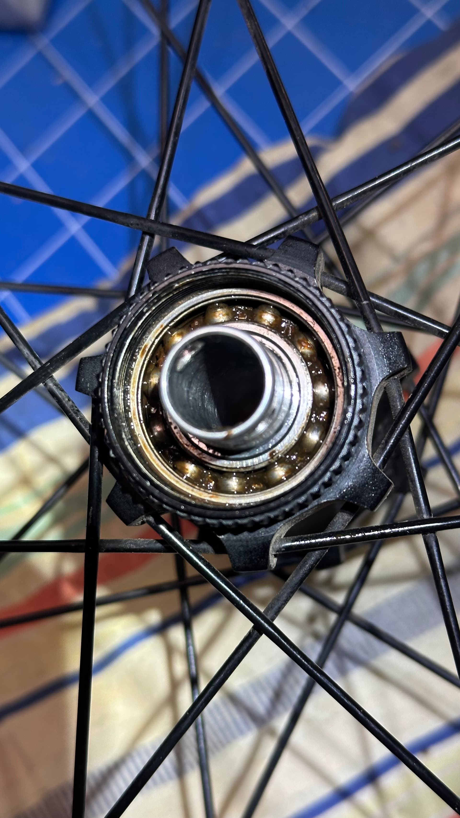 My rear hub bearings need replacing. (Discovered when the wheel wouldn’t turn when I swapped to these wheels yesterday for a CX event!)