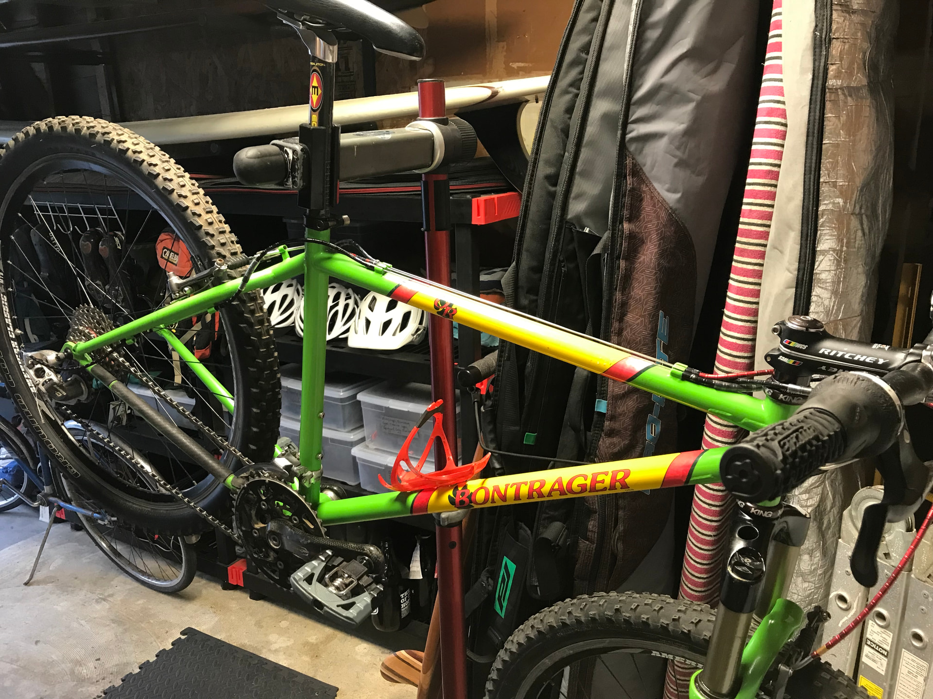 Thanks Dave and Brad for the long-term storage help for MTBs. I’ll be home soon to refresh sealant and check brakes for air bubbles. Brad asked for a picture of the Bontrager Racelite with a Marzocchi fork, so here she is…but, I think she’s too small for you Brad, and she’s not for sale. Thanks fellas for the fine work you all do!